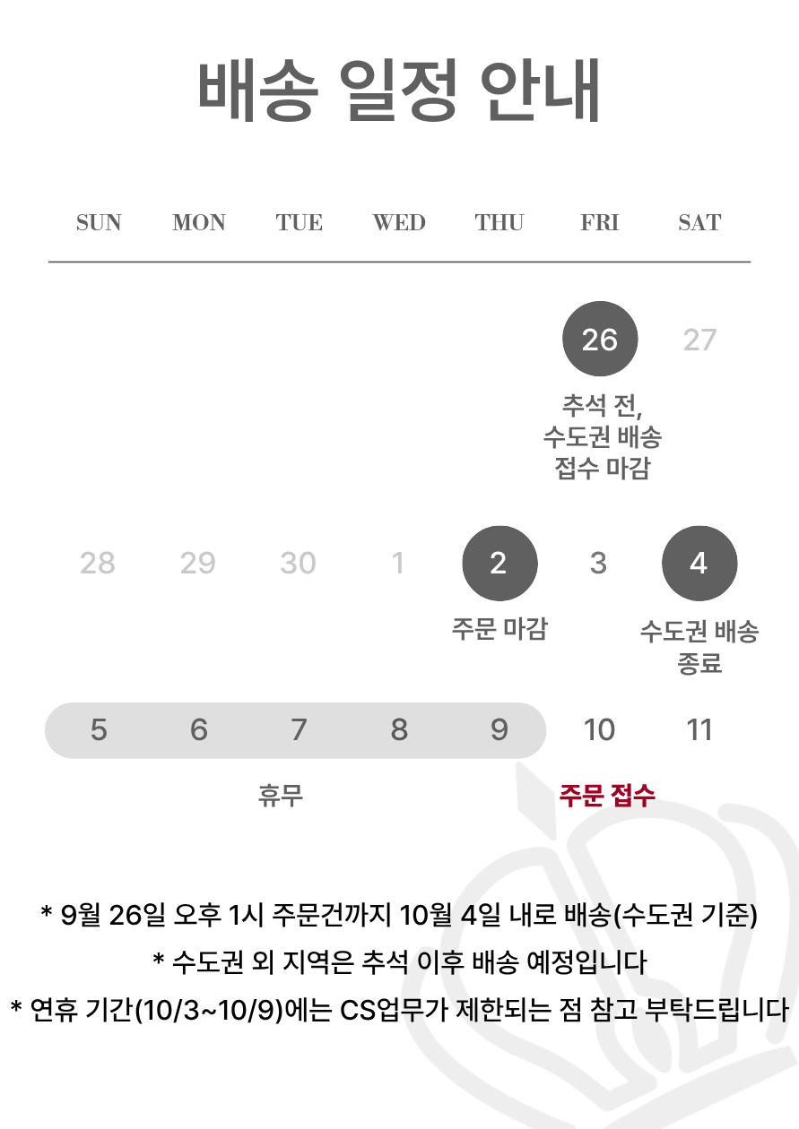배송기간은 발주 확인 후 10~14일 정도 소요될 수 있습니다. (토,일,공휴일 제외)