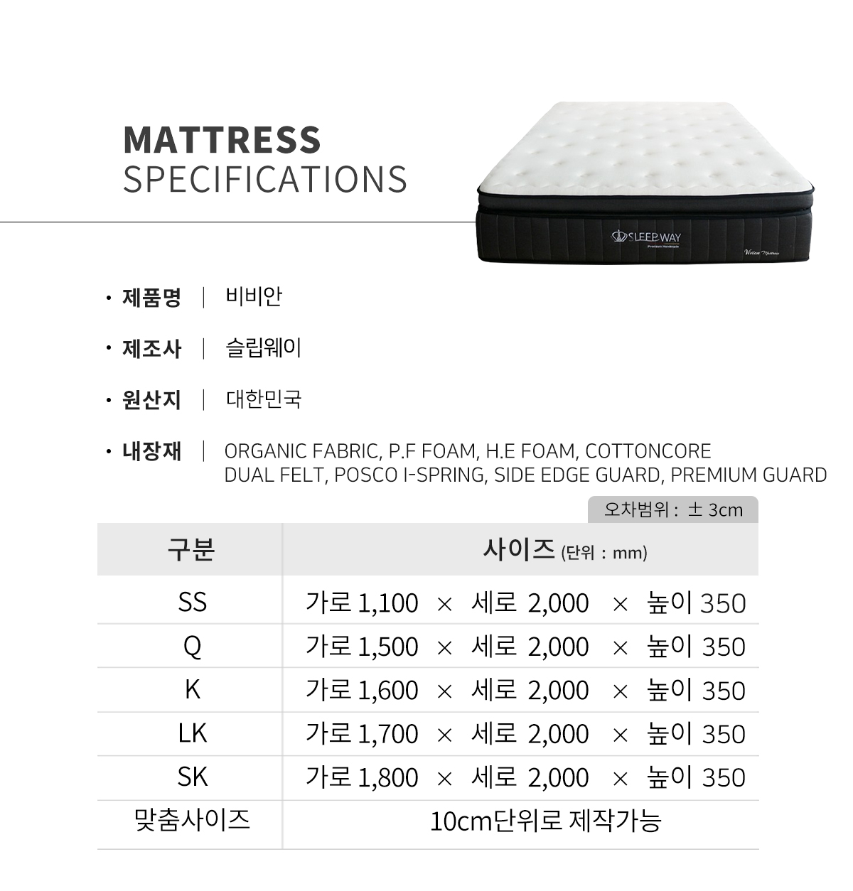 비비안 매트리스는 특판 전용 상품으로 오프라인 매장 또는 온라인에서 구매가 불가하며 가구박람회 단독 구매 상품입니다