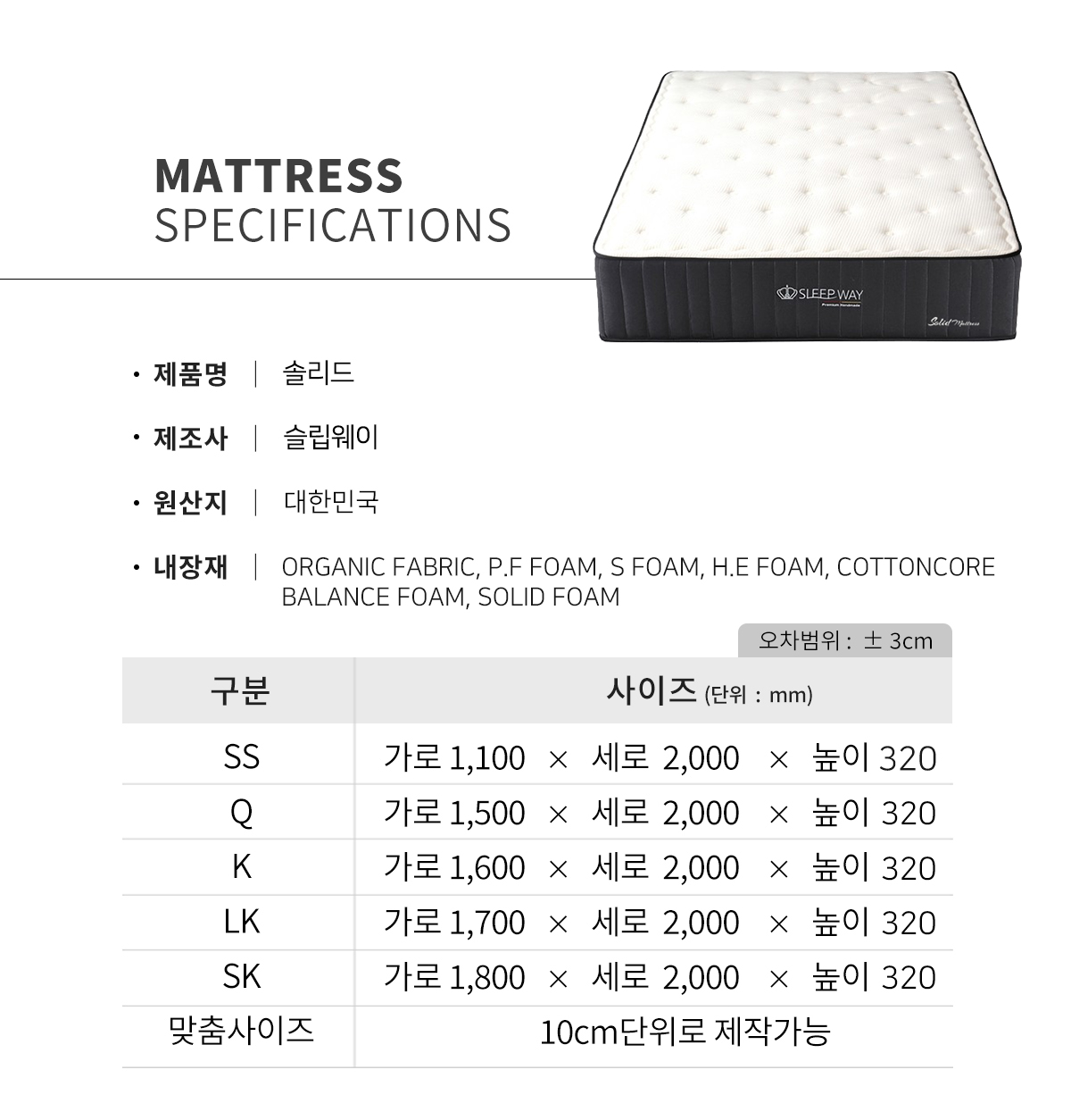 솔리드 매트리스는 특판 전용 상품으로 오프라인 매장 또는 온라인에서 구매가 불가하며 가구박람회 단독 구매 상품입니다