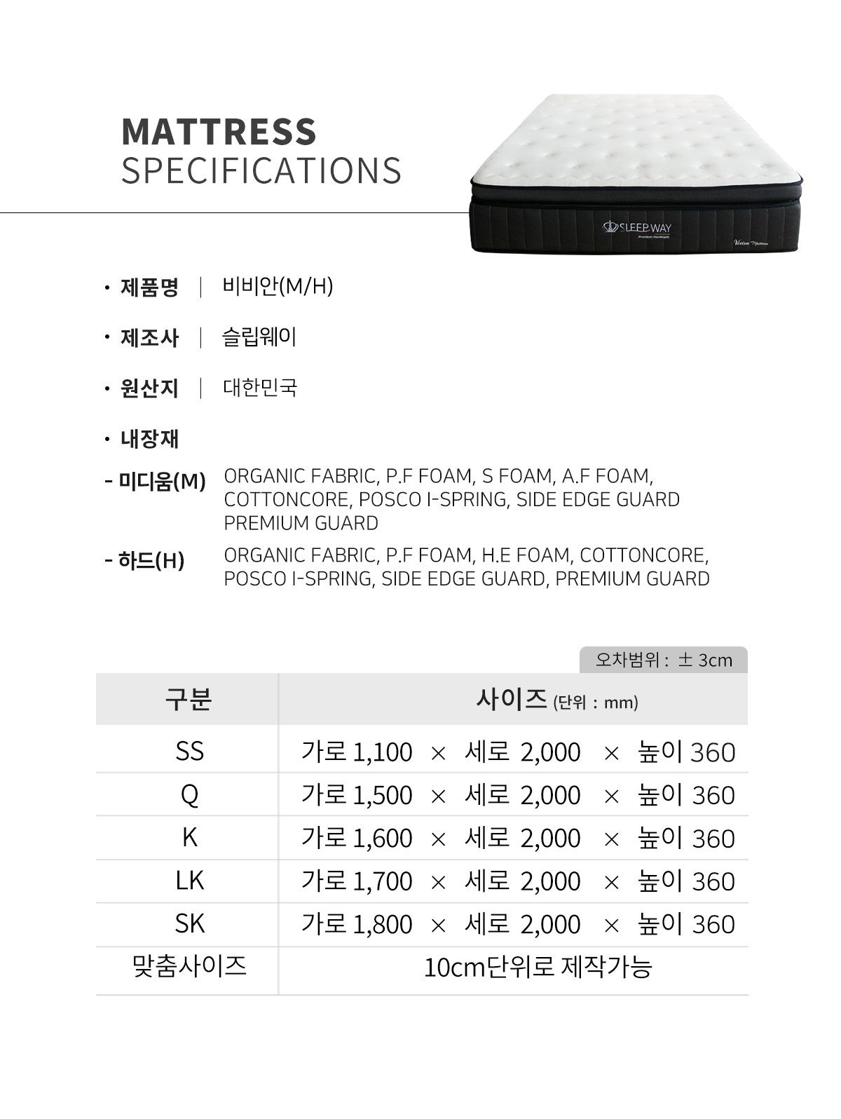 비비안 매트리스는 특판 전용 상품으로 오프라인 매장 또는 온라인에서 구매가 불가하며 가구박람회 단독 구매 상품입니다
