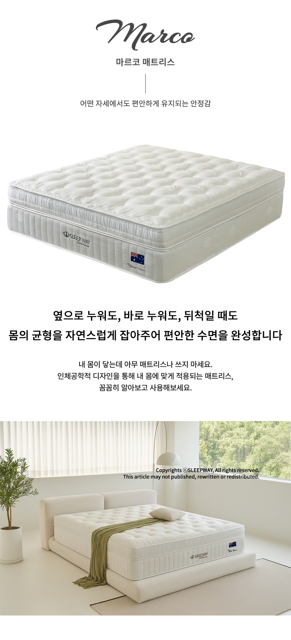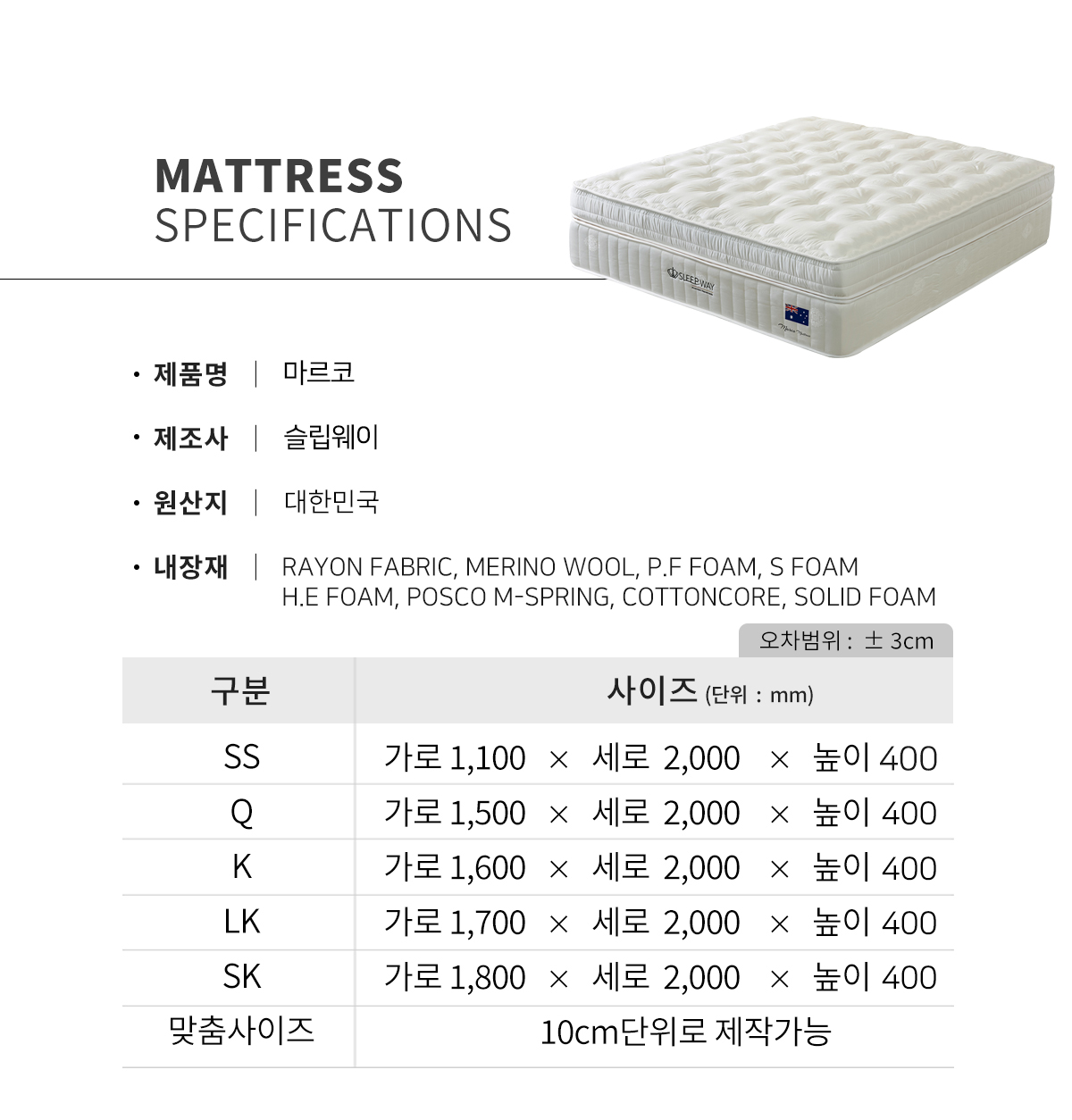 마르코 매트리스는 특판 전용 상품으로 오프라인 매장 또는 온라인에서 구매가 불가하며 가구박람회 단독 구매 상품입니다